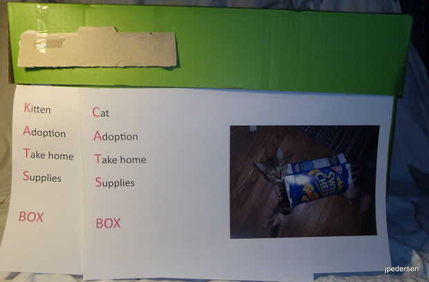 Primeros planos del cartel, he incluido artículos lista y gato de juguete.