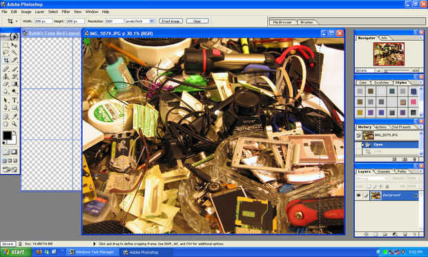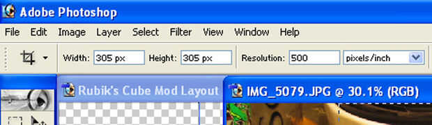 Abrir una imagen que desea imprimir en el cubo y use la herramienta Recortar. Antes de seleccionar el área a recortar, cambiar la configuración: 305px (pixeles) por 305px en 500px por pulgada cuadrada. ¿La razón he decidido 500pixels por pulgada fue que cuando imprimí en tamaño regular, y no en que las resoluciones, se convirtieron muy pixelizadas? / pixelado? Haga clic en y arrastre el área que desea mantener. Ayuda si tienes que ajustar a bordes de documento activada, si usted está tratando de mantener la mayor parte de la imagen. Después de que haya seleccionado, presione Intro o retorno y debe haber su nuevo tamaño imagen.