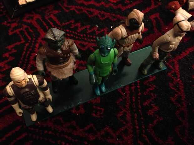 He añadido una pequeña cantidad de cinta de doble cara a los pies de cada figura después de trabajar a donde el estará pegado a la plataforma y añadido a la estructura.