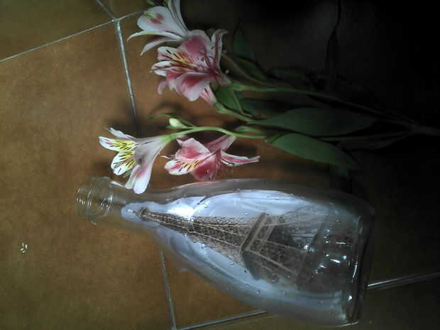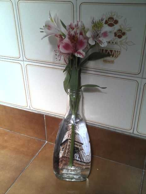 Tenía una botella de vidrio de agua sentado en casa sin uso, la llegada de primavera pensé que pueda re uso les como florero con un maquillaje simple a la botella. Se asombrados lo que utilicé para decorar, sí!!!! Usé el esmalte de uñas de diferentes