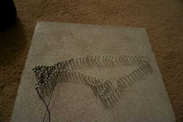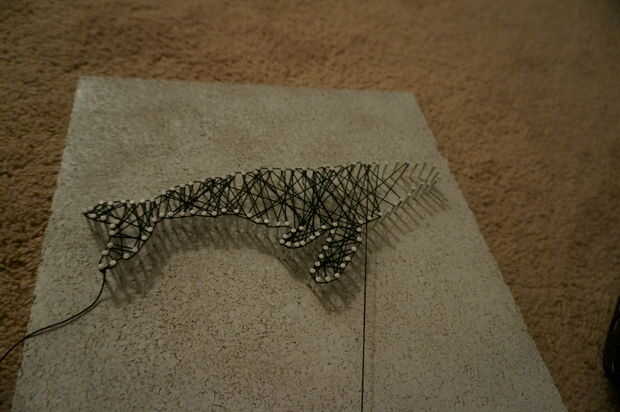 Comencé atando un extremo de mi cadena a un punto en la cola y luego empecé a tejer alrededor de las uñas al azar. Me aseguré de viento alrededor de cada uña y su vecino dar mi ballena un contorno sólido pero aparte de eso traté de no pensar mucho sobre dónde se iba mi cadena. Después de que había completado mi contorno tejió la cadena a mi punto de partida y lo ató apagado. Después de cortar las cuerdas exceso aplica pegamento a los extremos para evitar que se deshilache.