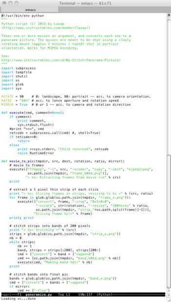 - En Linux y Mac OSX, hacerlo ejecutable: chmod + x panoramize.py