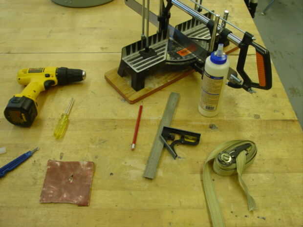 Caja de ingletes Sierra: la sierra en la foto cuesta alrededor de $30, pero he tenido resultados casi idénticos con una caja de ingletes madera $7 y una caja de ingletes de potencia $700. Si puede cortar de 45 buena hará el trabajo.