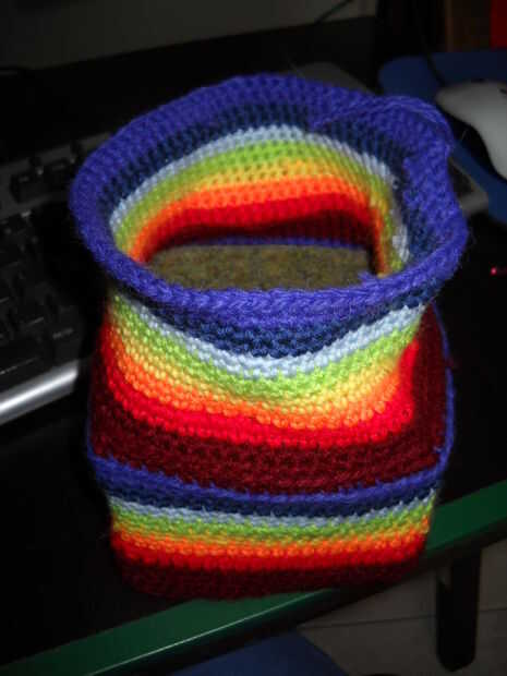 Espiral crochet 14 rondas ("tubo"). Esta parte debe llegar a la base cuando se pone en la Plaza de la alfombra y rectángulos. Del ganchillo esta parte tirando de él hacia usted. Cuando lo termine, usted puede empujar en el cuadro.