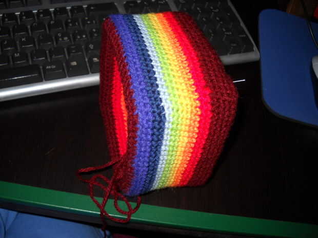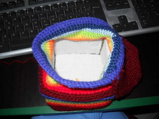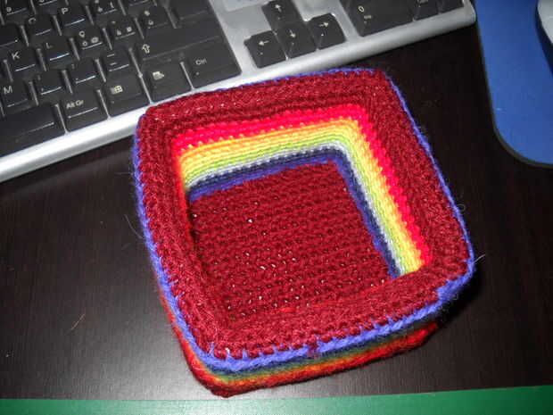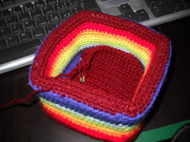 Vi las esquinas y los laterales, la parte interior con el exterior. Esto es simple porque con ganchillo no se verán las puntadas.
