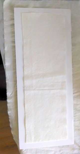 Utilizando el cartón del marco como un patrón de corte el bateo recortar lo más pequeño de 1/4" y cortar el tablero de la espuma del mismo tamaño que el patrón de cartulina, fieltro 1/2" más pequeño que el patrón y por último, la muselina 1 1/2" más grande que el patrón de cartulina.