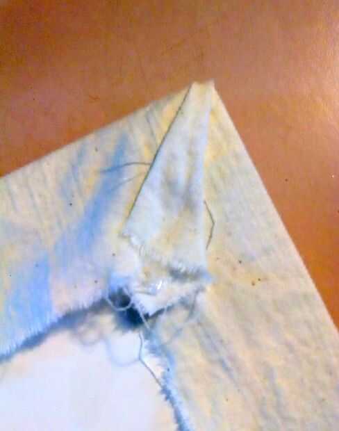 Coloque el lado bateo hacia abajo en el lado equivocado de la muselina y caliente pegar la tela en la parte trasera, teniendo cuidado de hacerlo cómodo y crear triángulo en las esquinas para que sea limpio. No recorte el exceso.