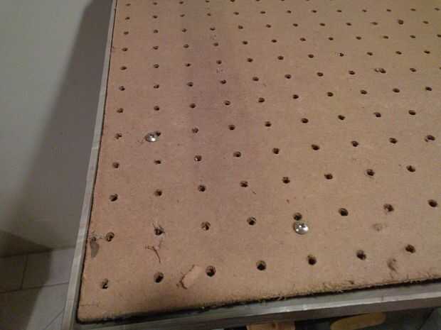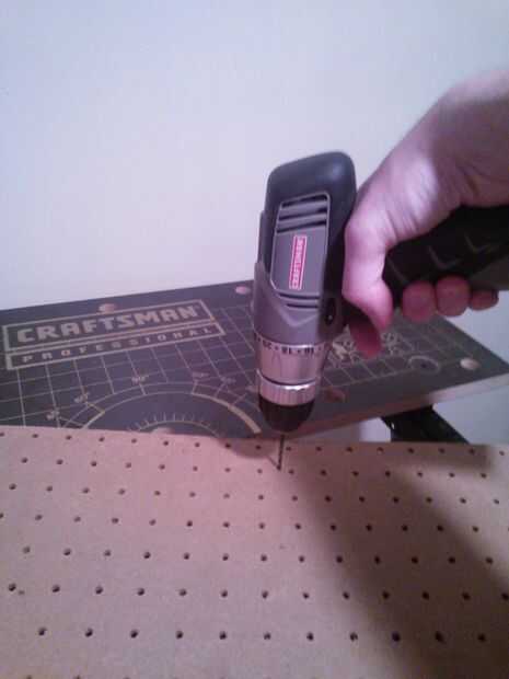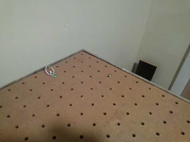 Marca los agujeros en el perforado con agujeros de tornillo en marco. Si el marco no tiene orificios pretaladrados, Marque uniformemente puntos para los tornillos sujetar pegboard a marco, dando un apoyo extra en las esquinas.