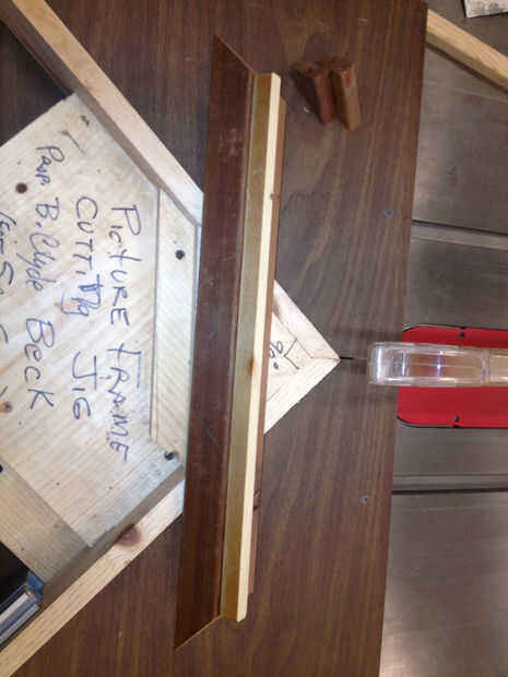 Aviso He hecho tiras de medición de madera de desecho y madera x 1. Ver las fotos. Yo uso de esos constantemente medir cada lado del marco en la ranura/ranura que recibe la imagen. El tieso palo de medición funciona mejor que una cinta métrica flexible para asegurar que el marco es el tamaño correcto.