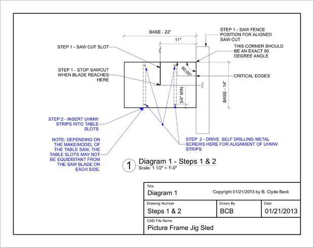 La clave para la precisión es la Plaza-ness de la placa base y la alineación con las ranuras de hoja y Sierra de mesa. Para lograr esto véase el diagrama 1. (JPG del diagrama 1)