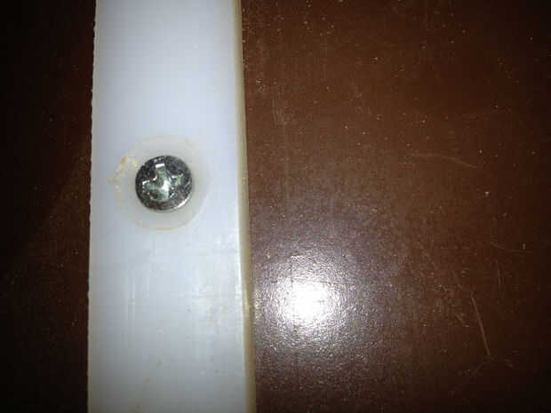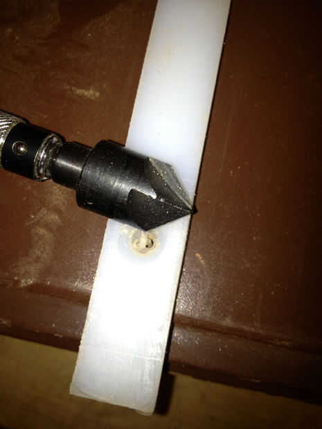 Perforar un agujero abajo el UHMW en el Consejo de personas con discapacidad. PRECAUCIÓN: Auto perforación tornillos tornillo cosas para arriba y no avellane - pre perforación para los tornillos!!