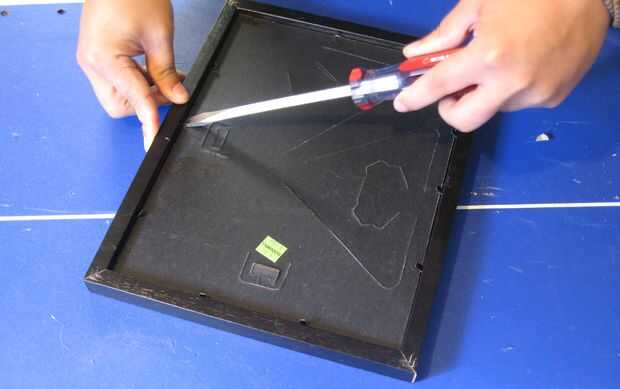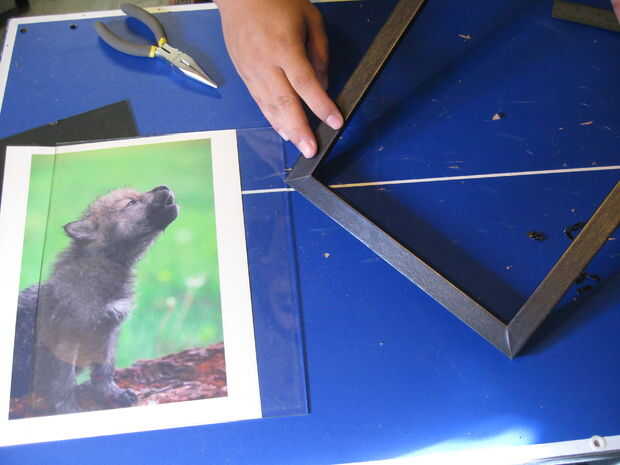 Nota: Marcos de estilo diferentes utilizan métodos diferentes para sostener las imágenes dentro. Este marco particular utiliza pequeñas lengüetas de metal que debe ser extirpado con un par de pinzas.