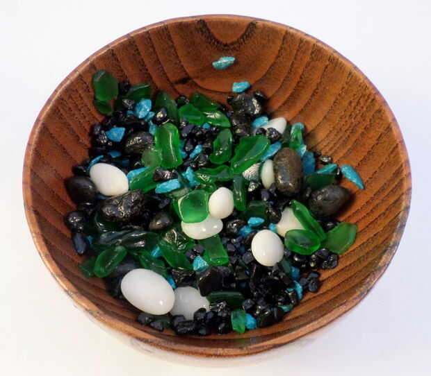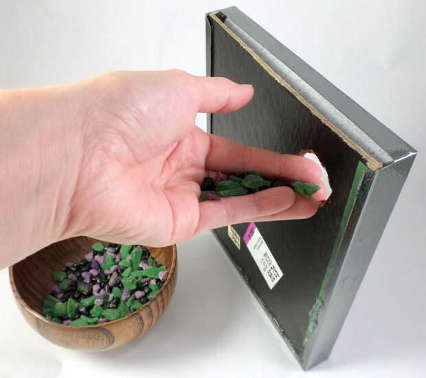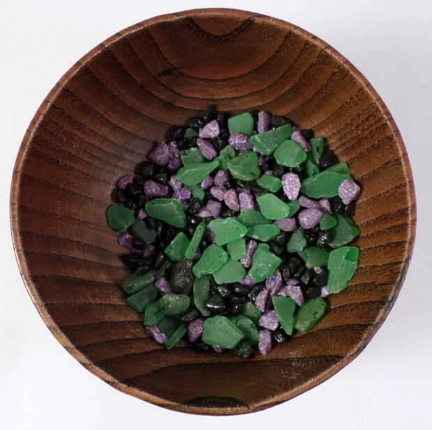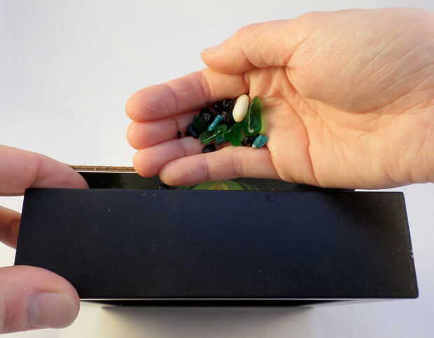 Básicamente, escoger unas piedras bonitas que usted parecerá agradable en su terrario. Asegúrese de que son lo suficientemente pequeños como para caber fácilmente dentro. Ver lo que te seca versus humedad. He utilizado piezas pequeña grava de un acuario viejo y poco pulido de vidrio (verde) de una playa que había recogido.