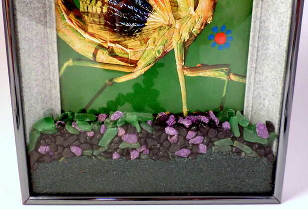 Para el marco de madera, cuidadosamente inclinado el respaldo hacia el exterior y vierte las rocas a través de la abertura en la parte superior (ver imagen). Para el marco metal-enmarcadas, usé el orificio en el respaldo para verter las rocas pequeñas en el marco. Golpee suavemente el terrario en una superficie dura que la grava colocar en una capa horizontal. Utilice una regla para medir la altura de la capa de roca pequeña y parada cuando haya alcanzado la altura deseada, basado en su diseño previsto (si había hecho uno).