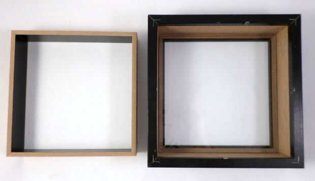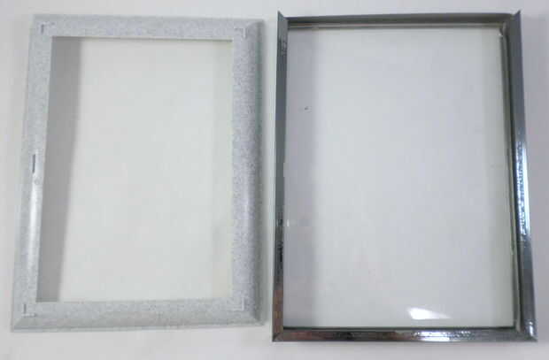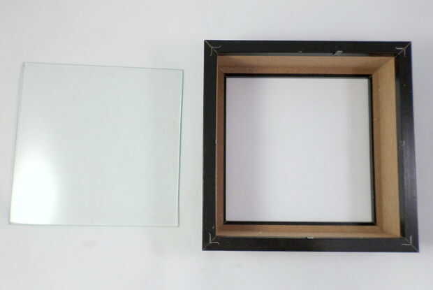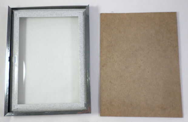 Desarmar cuidadosamente el marco, cuidando especialmente de manipular el vidrio (a menudo hay algunas esquinas rotas). Limpiar el cristal (en ambos lados) con algunos Windex y un trapo, va a ser duro limpiar el interior más tarde! Vistazo a las diferentes partes del marco, pensando en cómo será la mejor manera para sellar la parte inferior del marco para que no escape el agua hacia fuera (te voy a mostrar los diferentes enfoques utilizan en los siguientes pasos). Tirar hacia fuera cualquier inserción de cartón que no desea utilizar. También averiguar qué parte será la parte superior y lo que será la parte inferior – para los marcos metal-enmarcadas, usted querrá les flip boca abajo para que la parte cerrada superior está ahora en la parte inferior, donde le ayudará a mantener el agua salga.