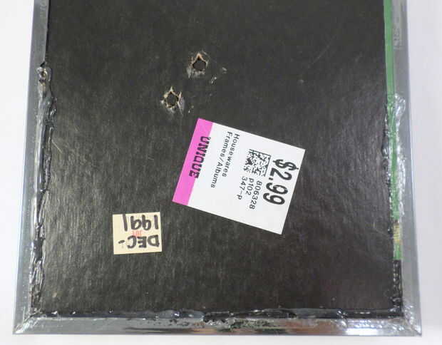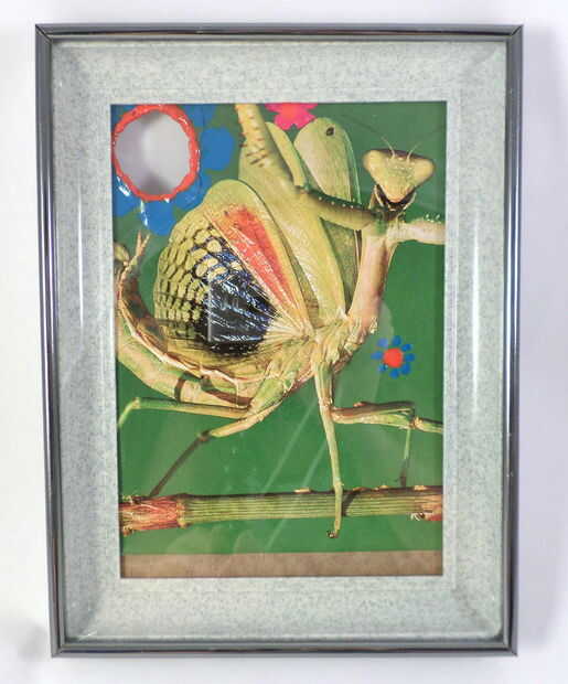 Para este tipo de marco, creo que lo mejor es hacer un pequeño hueco en el respaldo, en algún lugar cerca de la cima, por lo que se puede acceder fácilmente al interior todavía. Lo hice utilizando un cuchillo para cortar el agujero, y luego yo había disfrazado con esmalte de uñas. Básicamente he cubierto los bordes de esmalte de uñas y convertido el agujero en el centro de una flor (véase los cuadros). Hice algunas otras flores de esmalte de uñas sobre la imagen para que coincida con éste, y creo que añade un bonito color al cuadro. Luego Deslice cuidadosamente el cuadro en posición (asegurándose de que se haya secado el esmalte de uñas!) y sellar la parte inferior del respaldo cerrado por caliente pegado a la estructura metálica.