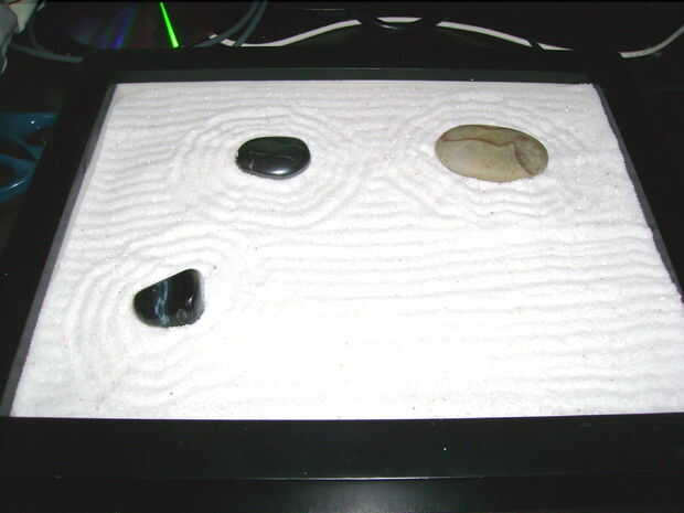 un jardín zen es una cosa interesante. Parece una mini caja de arena, pero en realidad se supone que traigo relaxatioin cuando usted rastrillar la arena. Y lo hace. No realmente creo que estaría relajado se rastrilla la arena, pero de alguna manera,