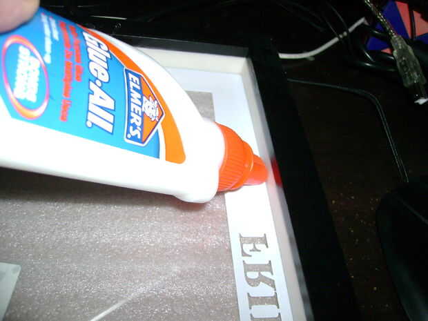 Deje seca para arriba (para que el pegamento no arruinar la cara del bastidor, con toallas de papel por debajo.