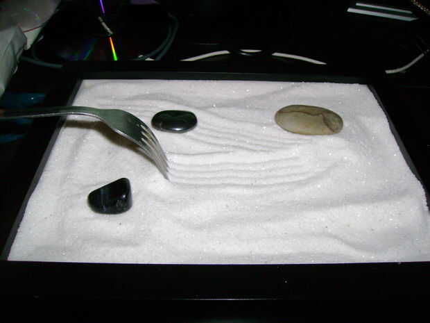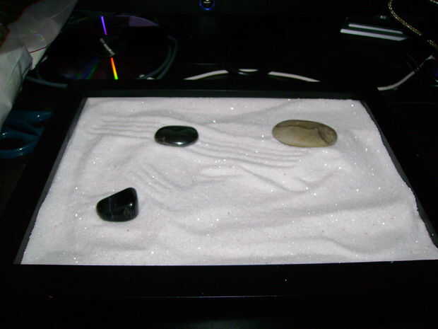 un jardín zen es una cosa interesante. Parece una mini caja de arena, pero en realidad se supone que traigo relaxatioin cuando usted rastrillar la arena. Y lo hace. No realmente creo que estaría relajado se rastrilla la arena, pero de alguna manera,