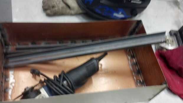 así que vamos a utilizar la sierra fría otra vez. Primero establecemos la sierra a la derecha a abajo izquierda 45 grados corte. Ahora vamos a cortar en la punta de la esquina del acero del ángulo con el mismo anti unen orientación como antes. sólo estamos haciendo un corte por pieza como el próximo corte será de la otra orientación. Asegúrese de fueron y va a cortar se va apoyar el cuadro que significa que todas las piezas con la pieza de soporte inferior quede en la otra pieza hacia arriba y