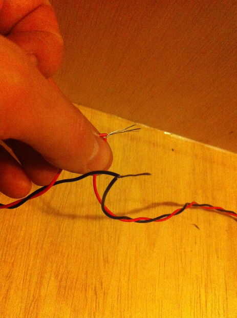 Mida el rojo y espalda y ellos por lo que se encuentran en el centro de la caja, tira de los extremos a revile el cable por debajo del corte.