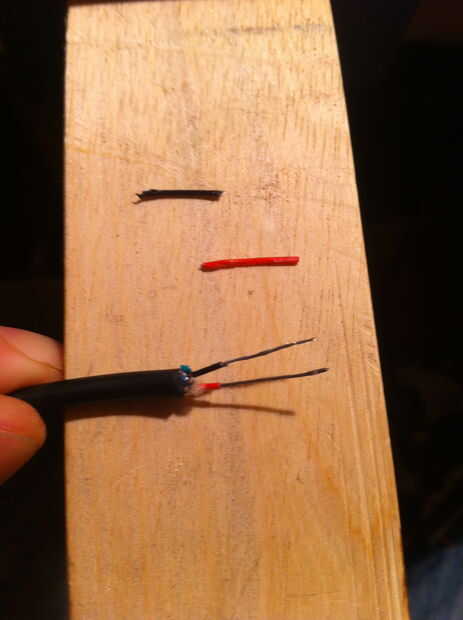 Recortar hacia atrás todo aparte de los cables rojo y negro,