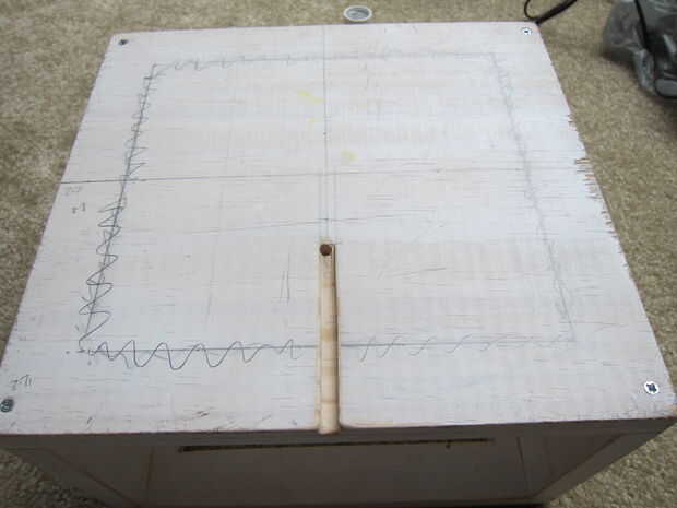 Comenzar midiendo para encontrar el centro muerto dentro de su caja. Una vez que el centro, coloque su toma Cala allí y marca/pre-drill los dos agujeros donde tienes que conectar el enchufe a la madera. Asegúrese de que no vas todo el camino a través, o demasiado profundas, cuando pretaladrar los agujeros porque queremos que los tornillos para sostener la toma de corriente firmemente dentro. Entonces 1" debajo de la parte inferior de la toma, perfore un agujero de sólo lo suficientemente grande como para que el cable de la lámpara caber a través de (todos se muestra en la imagen #1).