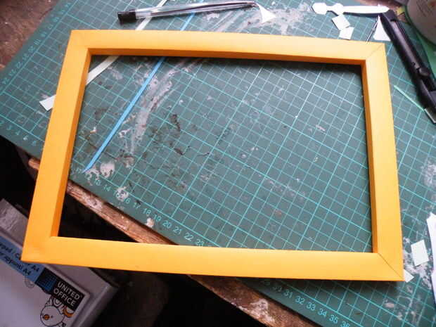 El marco se pegan en las esquinas y luego pegado a la capa posterior de la imagen real, dando una estructura rígida.