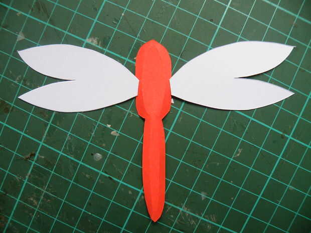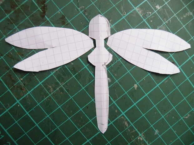 Anotó dos veces, las secciones de cuerpo de la libélula en un patrón oval, hacer hincapié en la placa-como la naturaleza del animal.