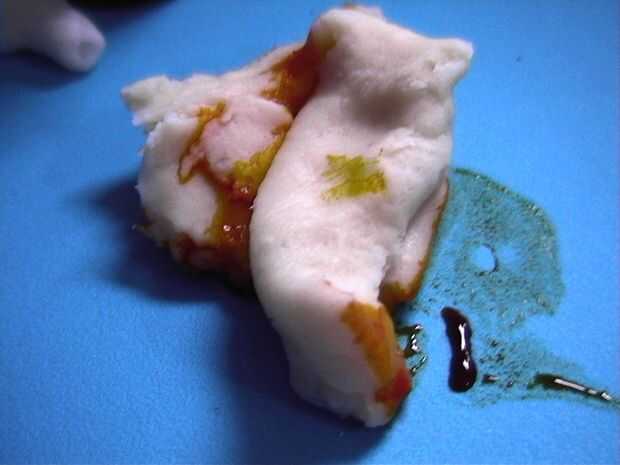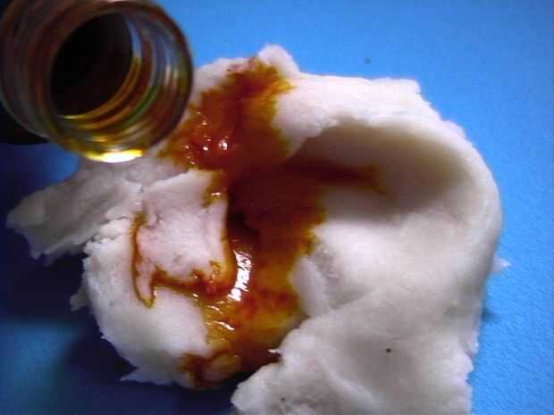 Para colorear tu plastilina, agregue gotas pequeñas de alimentos con palillo de brochetas y amasar bien.
