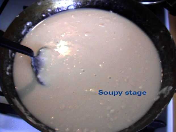 Cocinar a fuego medio hasta que la mezcla forme una bola. Si demasiado pegajosa, mantenga en la cocina, debe tomar unos 10 minutos para llegar a un buen estado - suele tener una textura elástica. Deje enfriar unos minutos en un plato. Mientras esté todavía caliente, ponga un par de guantes y amasar bien.