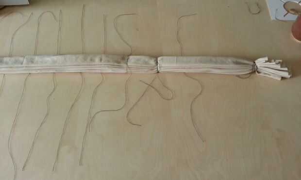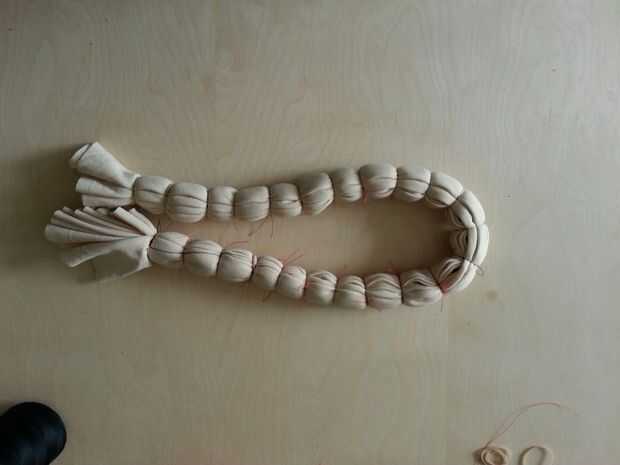 2. corbata: mida hasta dónde aparte desea que las líneas horizontales que. Utilice un hilo resistente para atar cada sección tan ajustadamente como sea posible. Hice un primer nudo con un trozo de hilo, que llegó con otro para obtener más.