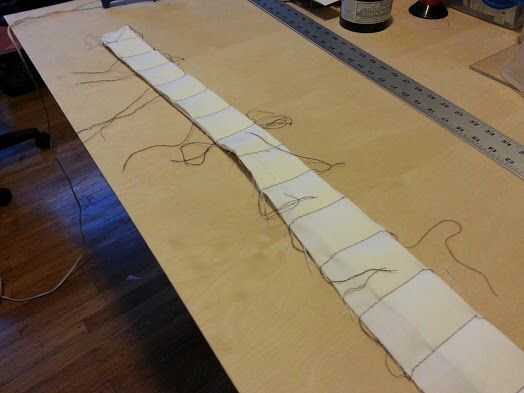 Pliegue de acordeón - como el método de lazo, asegúrese de que cada pliegue es visible en el borde. También había engañado un poco y utiliza una ficha de pegamento en los bordes entre las capas. Apenas corté los bordes cuando estaba acabado teñido, que ayudó a mantener juntos mientras se cose.