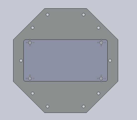 Dibujar líneas de centro del rectángulo y definir la línea de centro desde el lado de 4" como el eje y para que cuando el y axises de los octágonos y se alinean el rectángulo, los lados largos de la protoboard y el rectángulo de aluminio serían perpendiculares entre sí.
