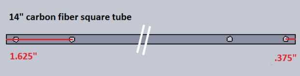 Perfore agujeros de 7/64" 1 y 5/8" en ambos extremos de la fibra de carbono larga tubos de 14". Perfore agujeros de 7/64" 1 y 5/8" de sólo uno de los extremos de tubos de fibra de carbono largo 6,125" y 8".