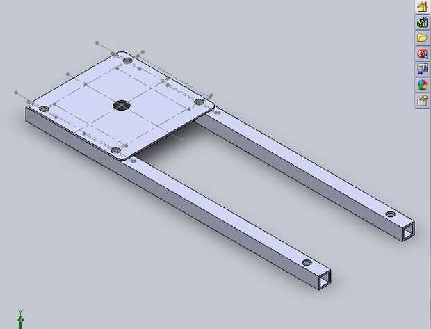 2 lugar de 6,125" carbono tubos en cada extremo de una hoja de aluminio cuadrado de 2 x 2. El tubo de carbono debe ser paralelo entre sí. Los dos tubos de fibra de carbono deben ser paralelos a la línea de centro dibujada en la hoja de aluminio de 2 x 2 donde son uno de los agujeros de la pata de motor.
