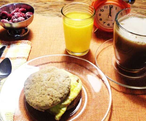 un delicioso, pequeño, especie de desayuno conveniente de sandwich.Paso 1: ingredientes 1 huevopatty de 1 hash marrón1 tira de tocino1 rebanada de quesogalletassal/pimientaaceitemantequillaPrimer paso es cocinar el tocino, papas y huevos.Paso 2: Coci