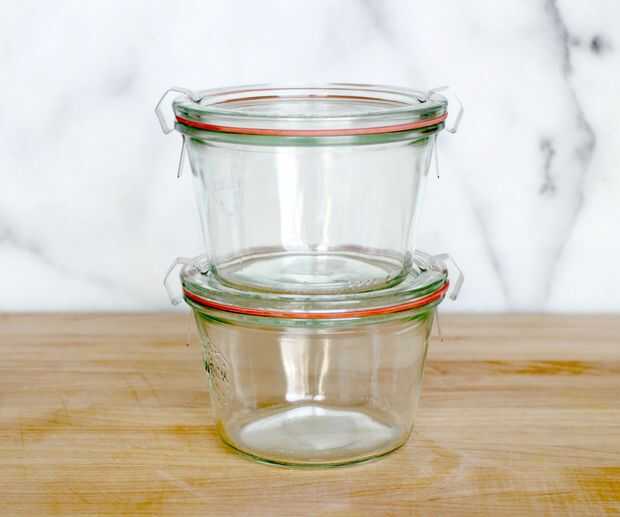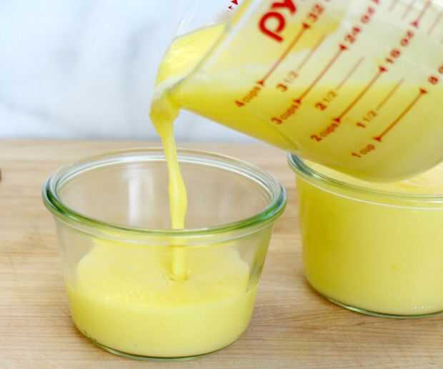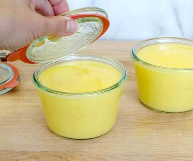 Transferir la cuajada de la olla a los contenedores de vidrio, a través de un vaso taza medidora o verter recipiente de algún tipo.