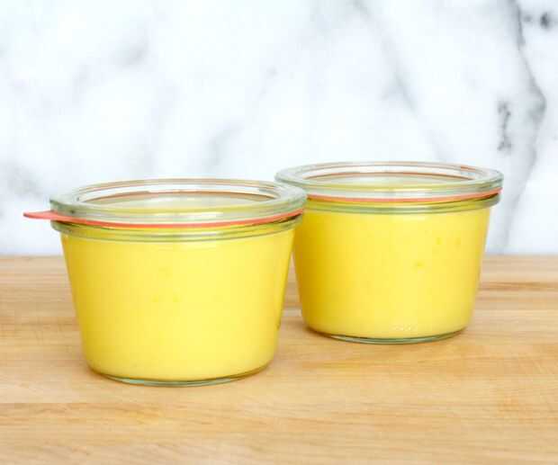 Nota: Si no pones la tapa inmediato, una piel se forma en la superficie de la cuajada.