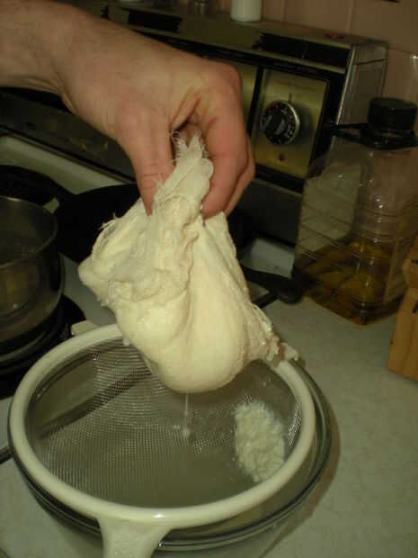 • Formar una bola. envolver el paño de queso alrededor de la cuajada. Exprima suavemente el líquido.