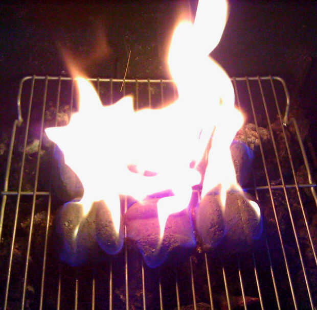 Tres briquetas pesan 4,6 onzas. Es 24,44 centavos de carbón. Concedido, más perros podrían ya cocidos con el mismo carbón, pero 3 briquetas es el mínimo para la cocción de un perro.