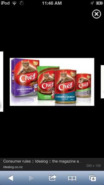 Mi gato le gusta chef. Él come por el poder completo. De hecho él come cualquier cosa por el poder completo. Su sabor chef favorito es carne de res y carne de venado!