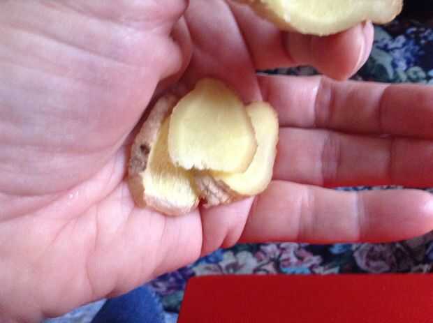 Unas láminas de tamaño moneda de jengibre fresco, anti inflamatorias, antioxidantes, calma nauseas, * y también gustos maldito Buenos