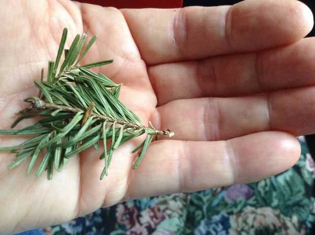 No en la foto, ramitas de Romero, orégano, tomillo o realmente cualquier hierba que te guste. Cuando cosecha mis hierbas, quitar los palitos de las hojas, como mi cosecha es siempre menos de lo que quisiera, los "palillos" se guardan para el té, mientras que las hojas de la hierba seca se utilizan en la cocina.