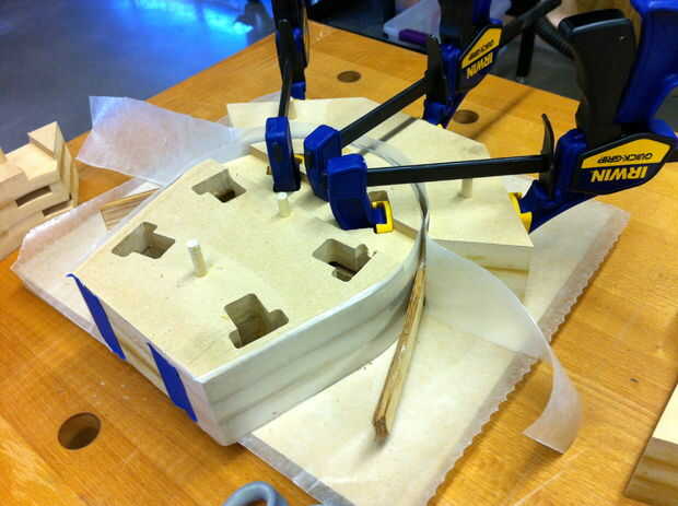 Laminación de madera es un proceso bastante desordenado. Es difícil crear piezas con dimensiones críticas, donde la funcionalidad se pierde si no se cumplen esas dimensiones. El resultado final de la laminación es sólo tan bueno como el molde/plantilla que se crea para él. Y si quiere variar la forma final aunque sea un poco, tienes que crear un molde enteramente nuevo, generalmente a mano.