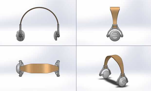 - Modelo 3D del producto terminado basado en dimensiones críticas (esencialmente tamaño de la cabeza de un auricular)