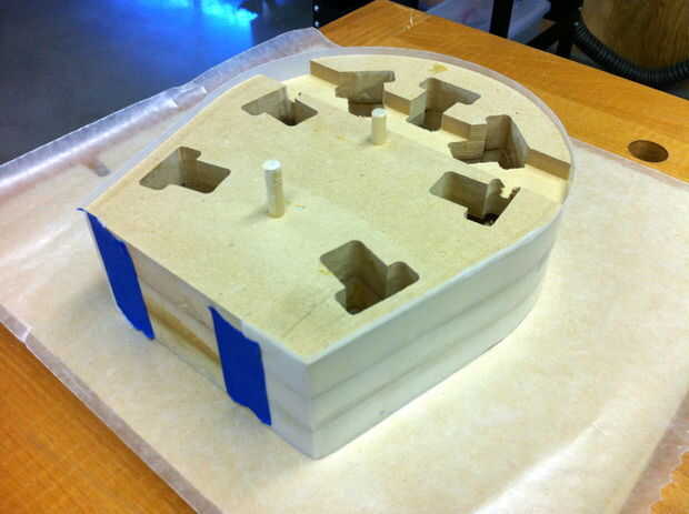 3. Cubrir el base MDF con papel de cera y poner el molde interior en ella.