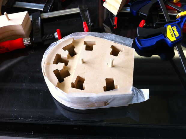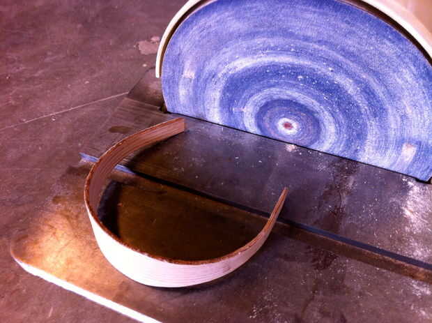 4. Mayoría de los bordes tendrá cola que exprimido hacia fuera durante la fijación con abrazadera y que debe ser extirpado. Puede utilizar papel de lija con la mano (principalmente usé grano 220) para limpiar los bordes, o usar una lijadora con alimentación de trozos más grandes. Si utilizas una lijadora con ser muy cuidado de no empujar demasiado duras y arena ausentes partes de la pieza real. Aprendí que las lijadoras de disco duro forma desintegran laminado madera más rápido que el hielo se derrite en una hoguera (necesidad de trabajar en metáforas mejor).