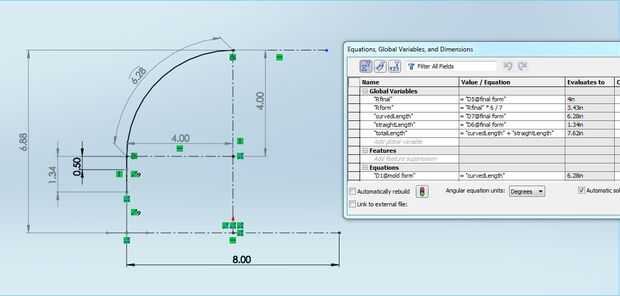 2 crear bocetos base ortogonales que definen completamente la forma final de la cinta (snapshot que viene una vez que soluciono mi partición de Windows...). Vincular las dimensiones en los bocetos para las ecuaciones que creó. Dimensión de la curva de la venda para ser el radio final de la venda, las extensiones más allá de la curva de tu longitud de pierna.