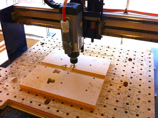 4. Afijo de ShopBot y ejecutar tus archivos (dejé las fichas que cada parte unida a la gran pieza de MDF, hacen mi vida más fácil para la celebración de las partes a la cama de ShopBot aviso)